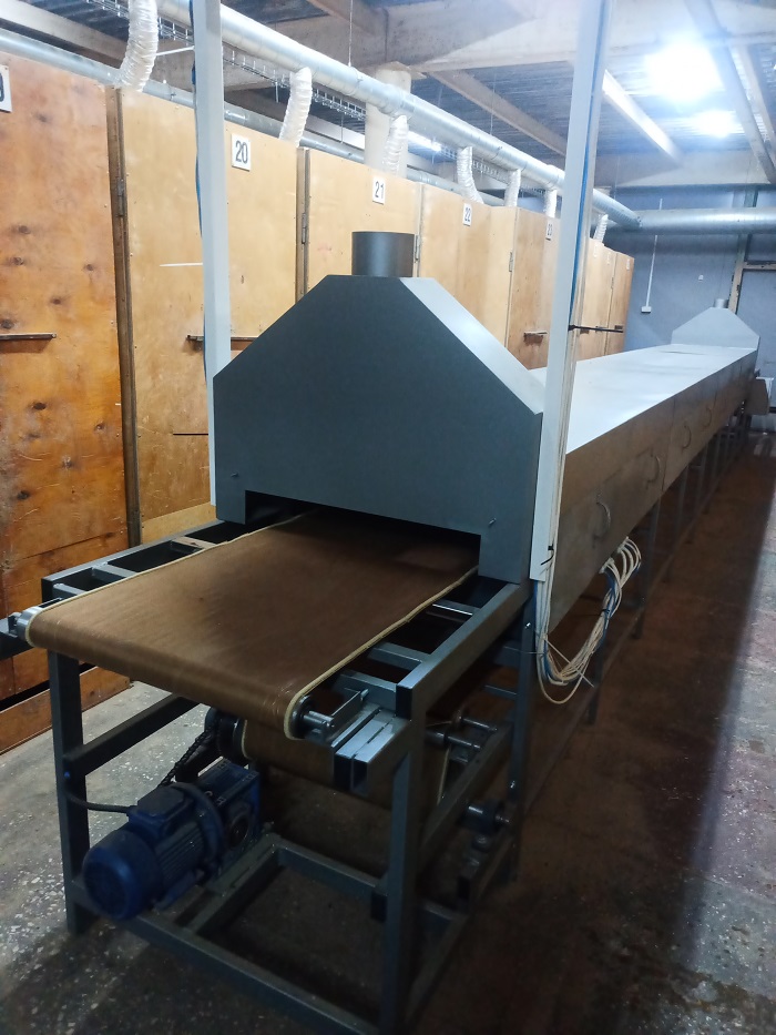 | Печь кондитерская модульная ПКМ Выполнена  на  тефлоновой ленте с бортиками, может быть переоборудована на цепной транспортер или металлический сетчатый транспортер.